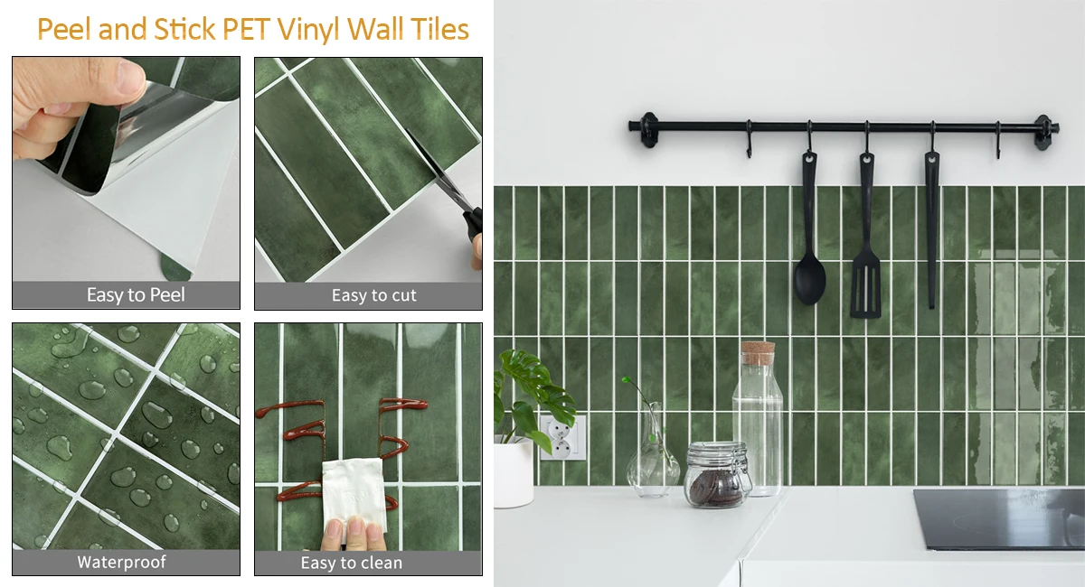 Fabriek Groothandel Stok Op Tegels Groen Gestapelde Waterdichte Schil En Stok Wandtegels